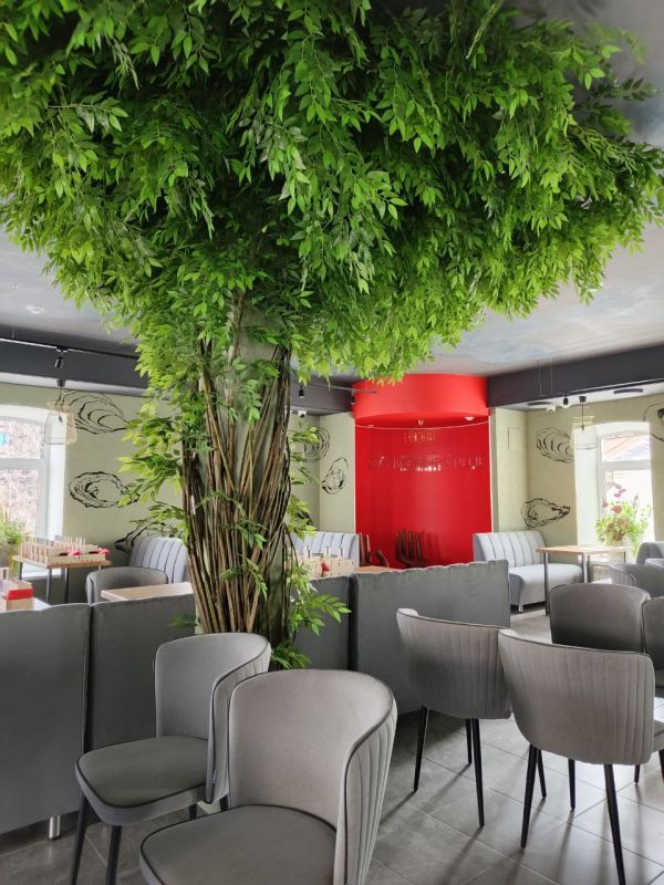 Нашими искусственными деревьями оформлены ресепшн, офис продаж, квартиры формата SMART, холлы подъездов, а также бассейн и фитнес центр БЦ Баланс. Искусственные оливы, фикусы, самшиты, драцены и замиокулькасы были изготовлены в мастерской нашей студии