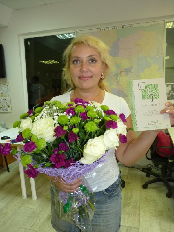 В нашей группе ВКОНТАКТЕ https://vk.com/irenlacustaweddingstyle мы проводим для наших подписчиков и участников конкурсы. 19 августа были подведены итоги нашего конкурса. Победитель был определен независимым приложением Lucky you. Им стала Надежда Проскурина!! Мы с радостью сообщаем, что уже вручили букет Надежде прямо на рабочем месте, в телекомпании "Енисей Регион";) Участвуйте в наших конкурсах и побеждайте))