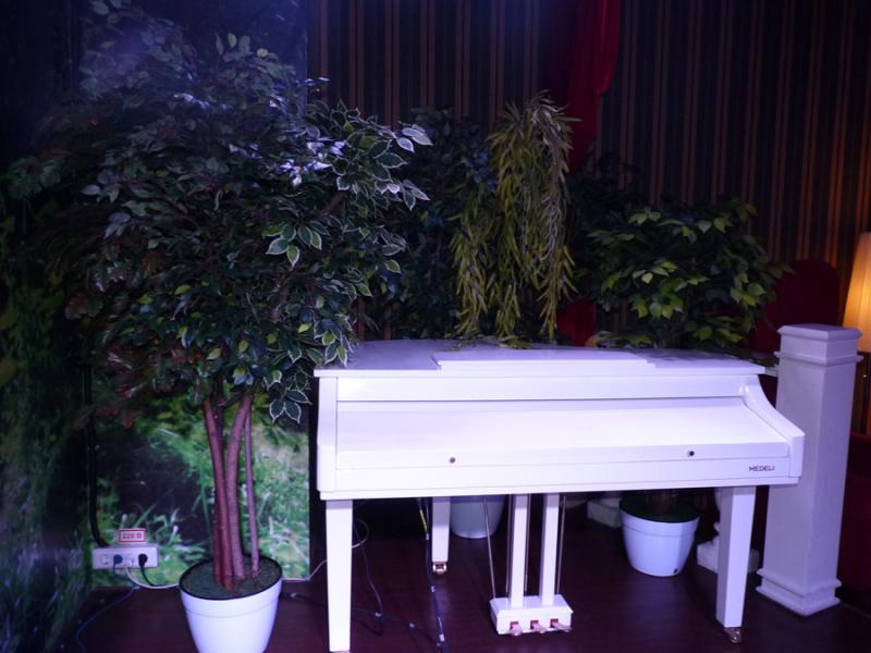 К нам обратились владельцы бара "Рояль в кустах" (г. Красноярск, ул. 9 мая, 26А) с просьбой привести в соответствие название и антураж. Мы предложили не стандартное решение: изготовить два дерева с разными кронами и одно с витым стволом и установить их за музыкальным инструментом, что создаст иллюзию спрятанного инструмента. Теперь наши деревья украшают сцену, а название бара целиком и полностью отражает действительность;)