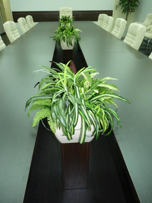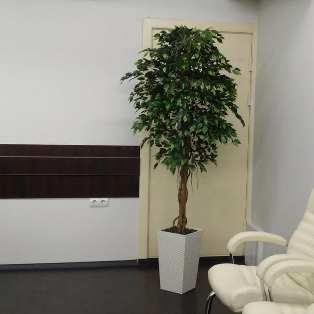 Деревья в офисах должны быть! Пусть даже искусственные, но вечно зеленые! Наше дерево (фикус, h180см без кашпо) украшает конференц зал. Озеленение искусственными растениями актуально для помещений с отсутствием дневного (натурального) освещения. Это, например: цокольные этажи, коридоры, фойе, рестораны, торговые центры, офисы банков и пр. (помещения с большим трафиком посетителей). Каждый проект по озеленению для нас уникален! Благодарим всех наших настоящих и будущих клиентов за сотрудничество!;)