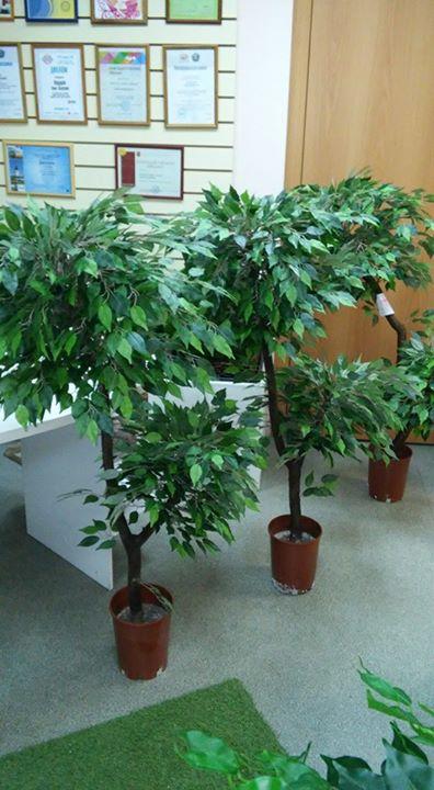 КПК "Сибирский Фонд Сбережений" заказали в нашей студии для своих филиалов искусственные деревья (фикусы). Наши деревья были отправлены в Байкальский Федеральный округ: г. Иркутск, г.Братск, г.Ангарск, г.Улан-удэ, а также в Красноярский край: г. Норильск, г.Ачинск, г.Лесосибирск, г.Назарово, с. Богучаны и в Хакасию: г.Абакан и г.Саяногорск. Два фикуса украшают головной офис компании в г.Красноярске. Искусственные декоративные деревья изготавливаются из натуральных стволов и искусственных веток с текстильными листьями. Искусственные деревья поставляются в черновых горшках диаметром 19 см., которые впоследствии устанавливаются в декоративные кашпо любого размера и засыпаются камнями или керамзитом.Производство в г. Красноярск.