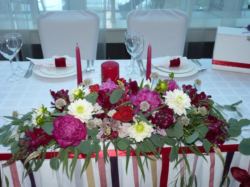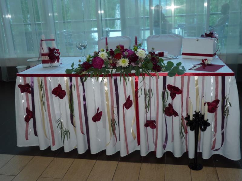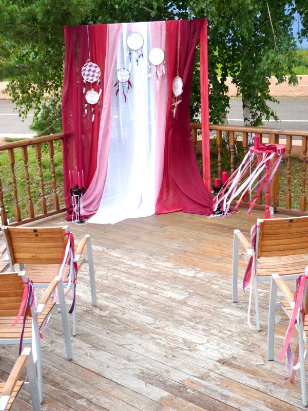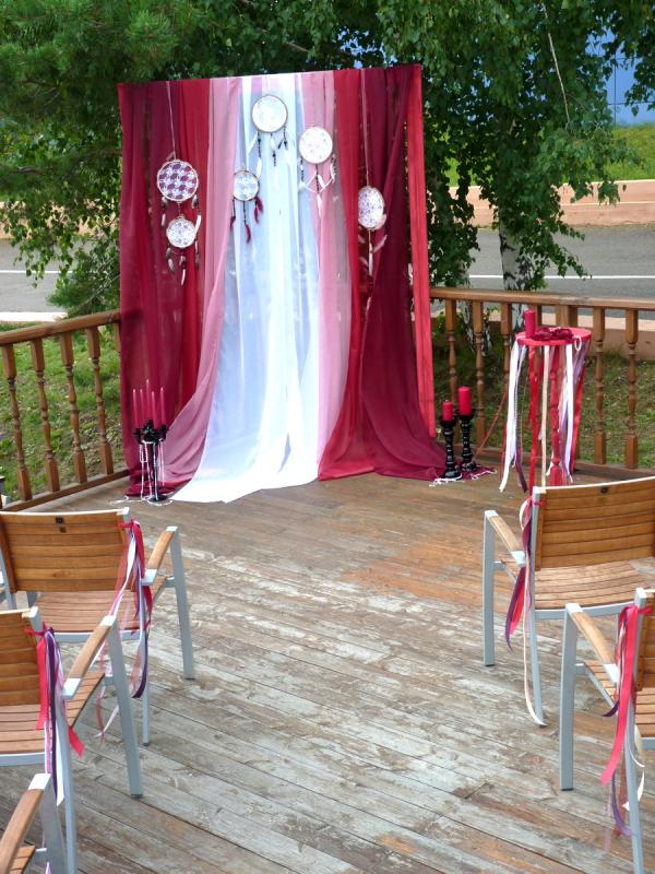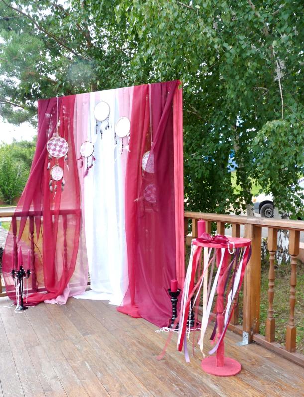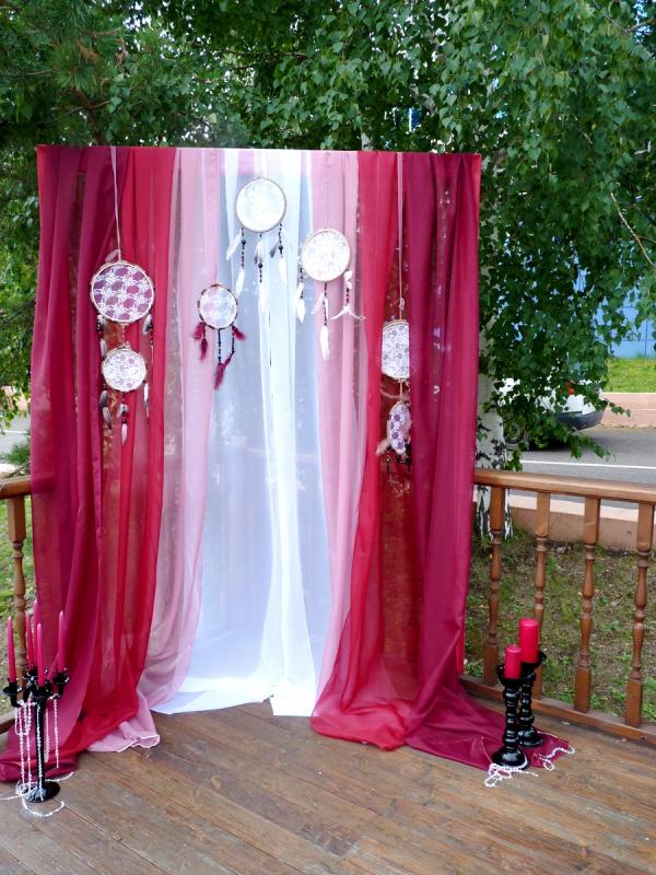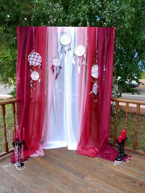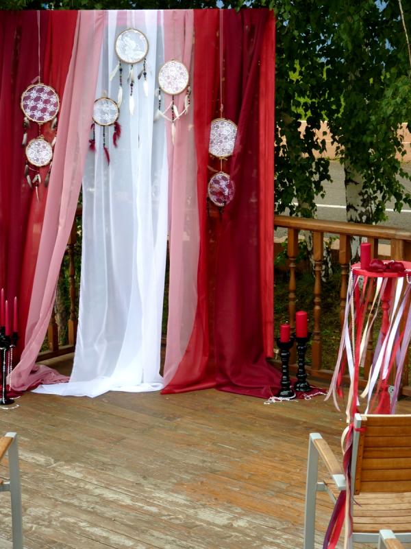 Свадьба в цвете Марсала для прекрасных молодоженов Александра и Светланы Коваленко. Торжество состоялось 1 августа 2015 года и проходило за городом в ресторане "Михайлов" (Очень рекомендуем! г. Красноярск, ул. Свердловская, д.289/стр.33). Арка для выездной регистрации была оформлена легкой тканью с переходом цвета марсала ("омбре"). Таинственности и загадочности придали "ловцы снов" и черные благородные канделябры со свечами и нитями стекляруса. Выездная регистрация проходила на открытой террасе. И кстати, погода в этот день была к нам благосклонна! Как только завершилась регистрация, начался дождь!!! Зал был оформлен цветочными композициями в высоких вазонах, будто парящих в воздухе. Президиум жениха и невесты был декорирован лентами, эвкалиптом и орхидеями цвета марсала. Стол молодоженов украсили бутылки, семейный очаг и книга пожеланий, в которой гости написали теплые слова молодоженам. Мы не стали придерживаться какого-то конкретного стиля в декоративном оформлении свадьбы. У нас получился коктейль стилей эко, рустик и бохо. И радостно, что гости и виновники торжества наш труд оценили!!! Для справки: Цвет Marsala это неяркий, теплый, сложный, благородный оттенок. Марсала - это вино, производимое на юге Сицилии. Марсала – сытный и стильный тон, становится повсеместно привлекательным, легко прижился в моде, красоте и промышленном дизайне, домашней обстановке и интерьере