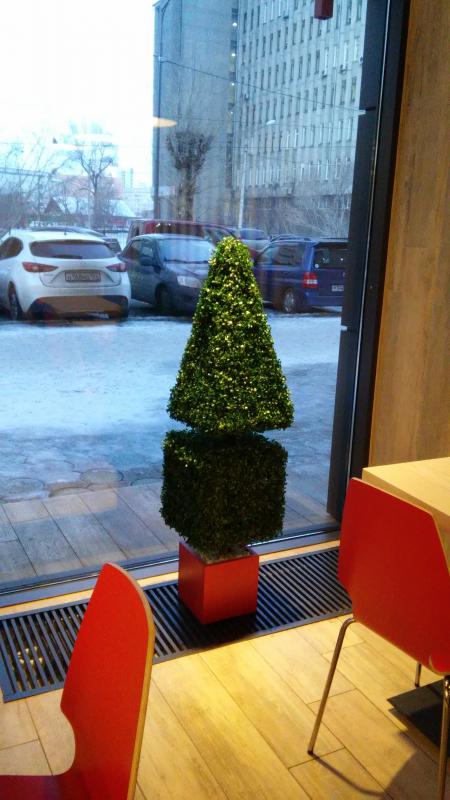 Необычные по форме самшитовые деревья теперь украшают ресторан быстрого питания "STARKS", который открылся в к\т "Эпицентр". Заметим, что эта форма дерева полностью наша задумка! Наши клиенты поддержали идею с геометрическими формами у самшита! Нам нравится реализовывать креативные проекты и особенно радует, что наши заказчики именно такие! Благодарим за доверие и желаем процветания сети ресторанов "STARKS"