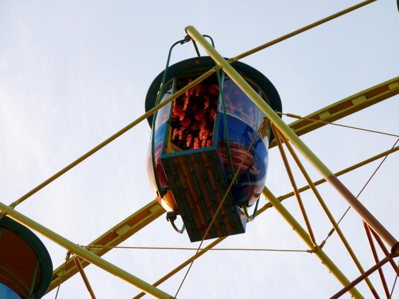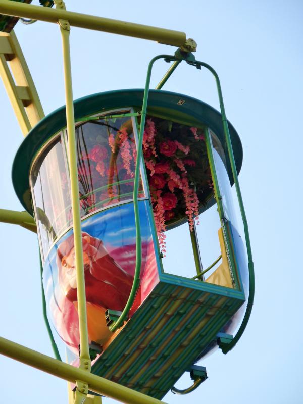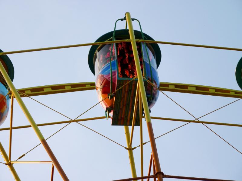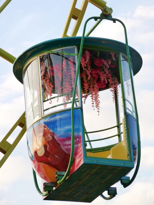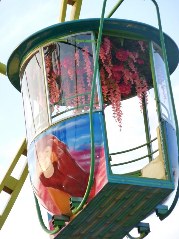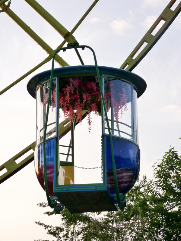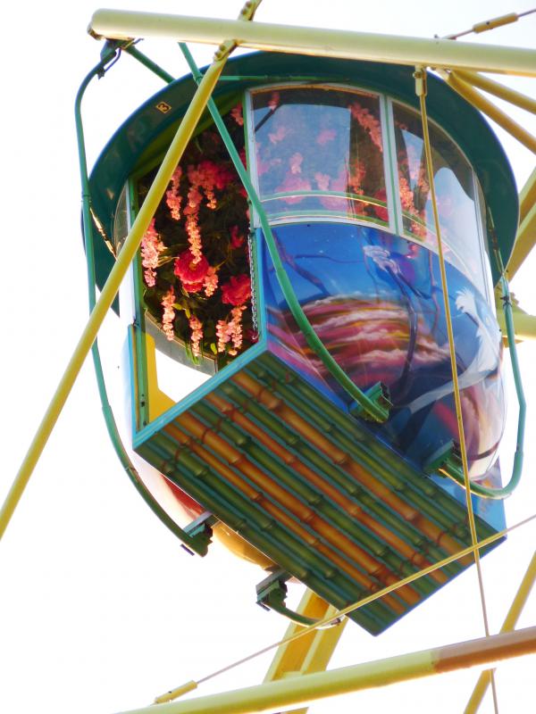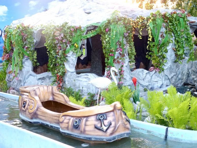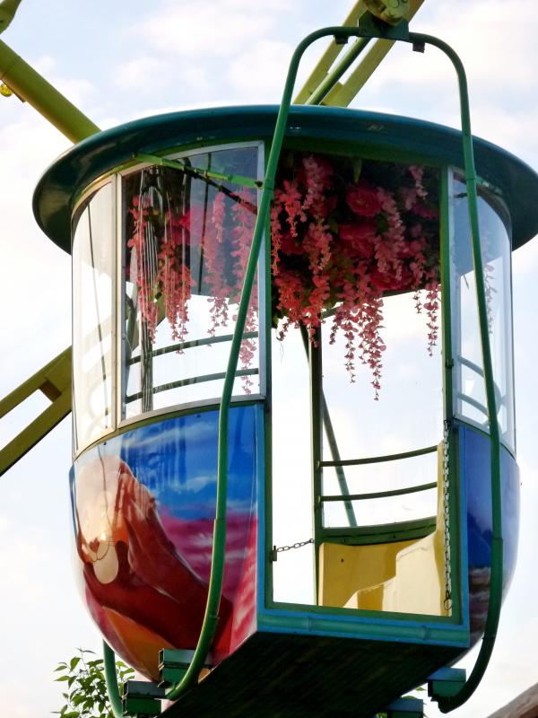 Цветочная кабинка для влюбленных на колесе обозрения и озеленение грота в парке аттракционов "Остров сокровищ". Кабинка с цветущими пионами и глицинией пользовалась популярностью у посетителей. Грот стал более зеленым и загадочным. Внутри были растянуты рыбацкие сети, поплавки. Цепкие паучки и стрекозы с любопытством смотрят свисая с потолка на проплывающие гондолы) Безусловно радостно, когда проект реализован и имеет положительные отзывы!
