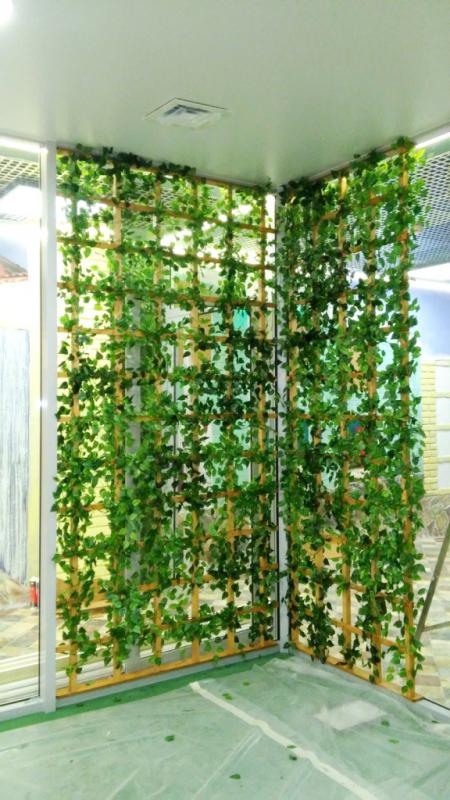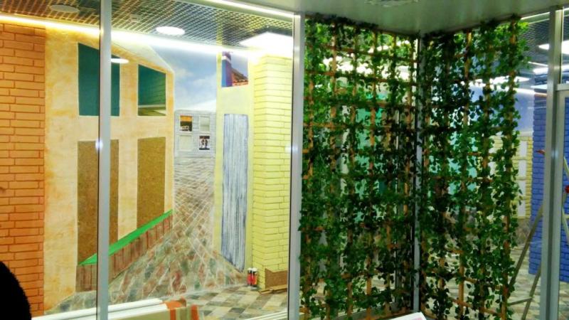В октябре 2016 года открылось уникальное пространство для развития детей "Хоббивиль". По задумке владельцев - это город, в котором дети смогут раскрыть свой спортивный, интеллектуальный и творческий потенциал, развить уверенность в себе и своих силах. Наша задача, как декораторов -озеленителей была украсить "Хоббивиль". В фойе у нас разместились в кашпо живые, горшечные растения: спатифиллумы, карделины, шефлеры. Ресепшн и стена были украшены брусничником, в декоративных кашпо на домах "посадили" траву. На цокольном этаже в дверном проеме удачно вписалась "зеленая стена", а в игровой комнате для малышей установили шпалеру с вьющимися растениями за которой спрятался в итоге ресепшн. Мы постарались подчеркнуть атмосферу, уют, гармонию города, где властвуют дети! Надеемся, что нам это удалось) Познакомится поближе с Хоббивилем можно тут - http://hobbyville.ru/