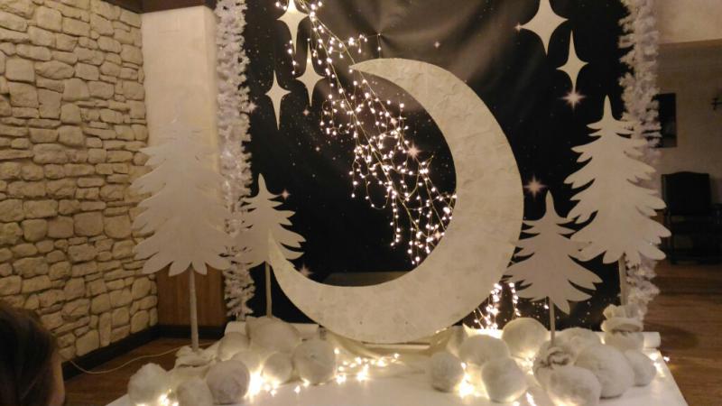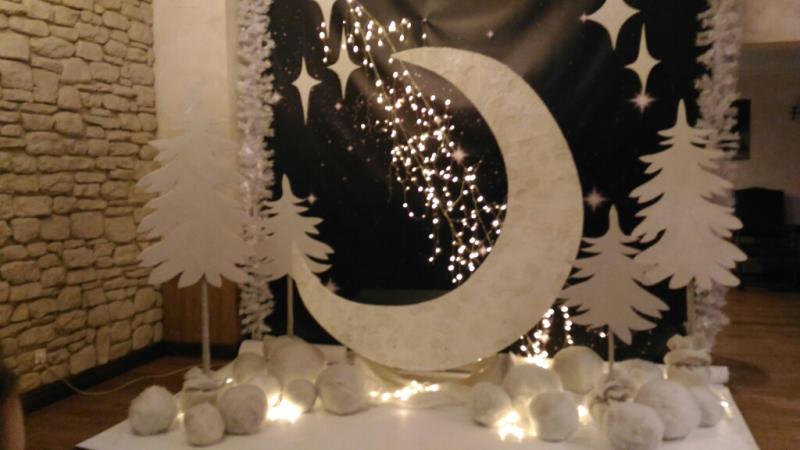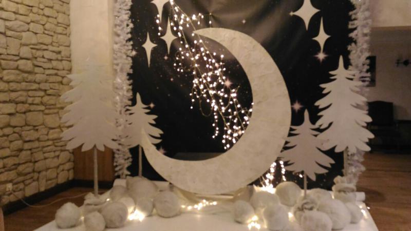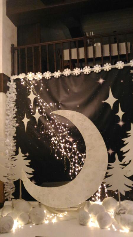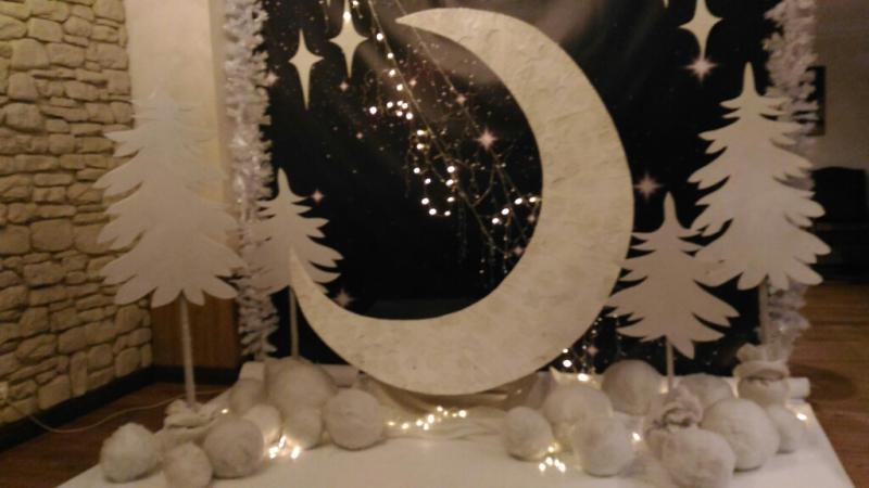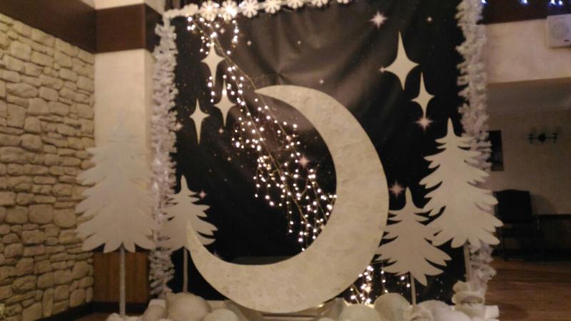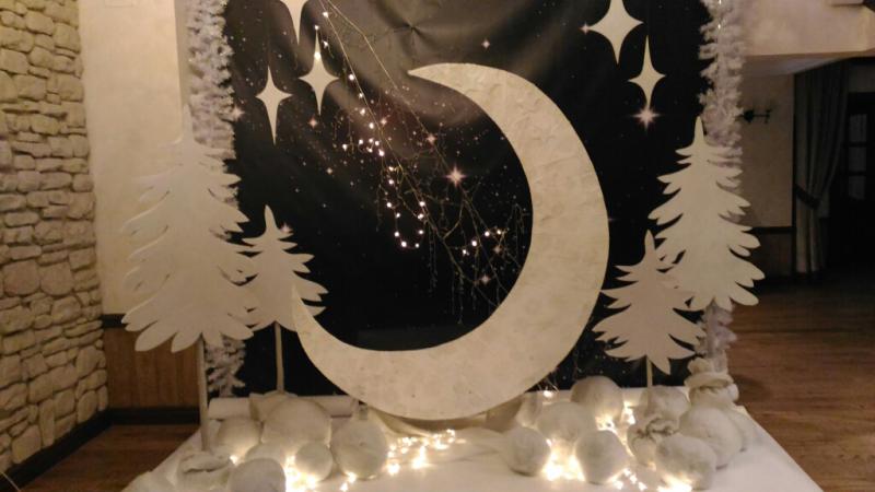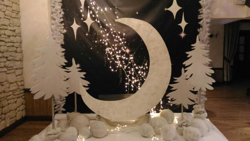 Специально для новогодних корпоративов мы изготовили фотолокацию с гигантским месяцем и звездами. Эффект получился очень красивым и волшебным!