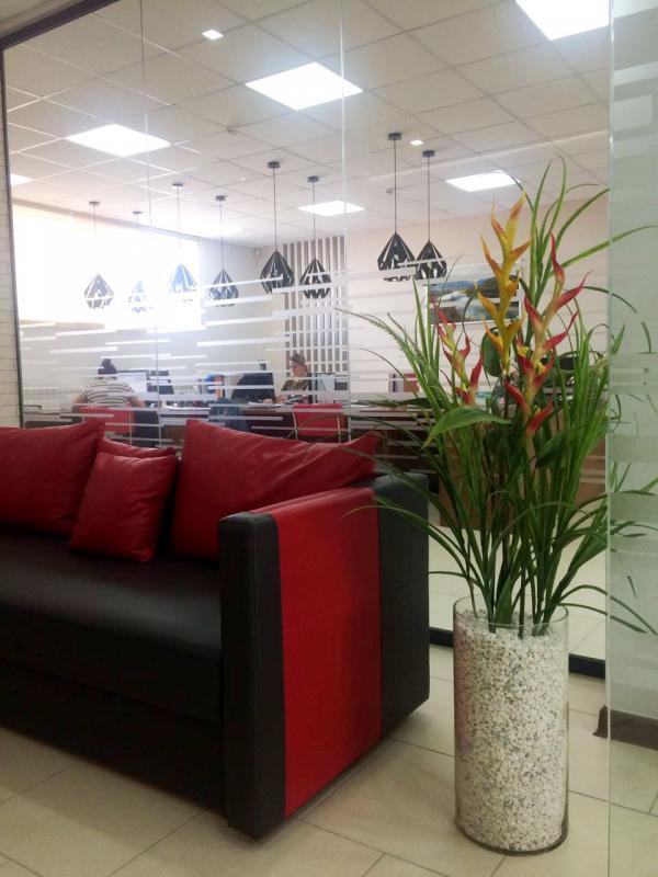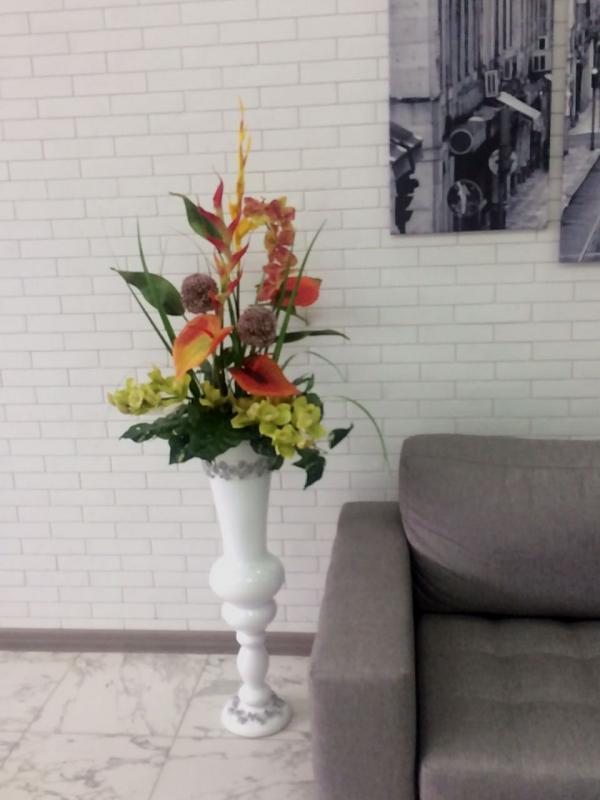В любом офисном пространстве обязательно должны быть растения. Мы не только эту мысль поддерживаем, а еще успешно реализуем! В проекте известного красноярского дизайнера Елены Невейкиной мы использовали исключительно искусственные растения. Так для кабинета директора и переговорной мы создали цветочные композиции с латексными цветами. В коридоре установили фикус Бенджамин, а на стене в нише повесили зеленую картину. Плюсов в декорирование искусственными растениями не мало, но самый главный: абсолютно не требуют ухода. В озеленении были использованы искусственные растения нового поколения (real touch). Теперь офисное пространство оформлено функционально, удобно, комфортно с легкими цветочными нотками.
