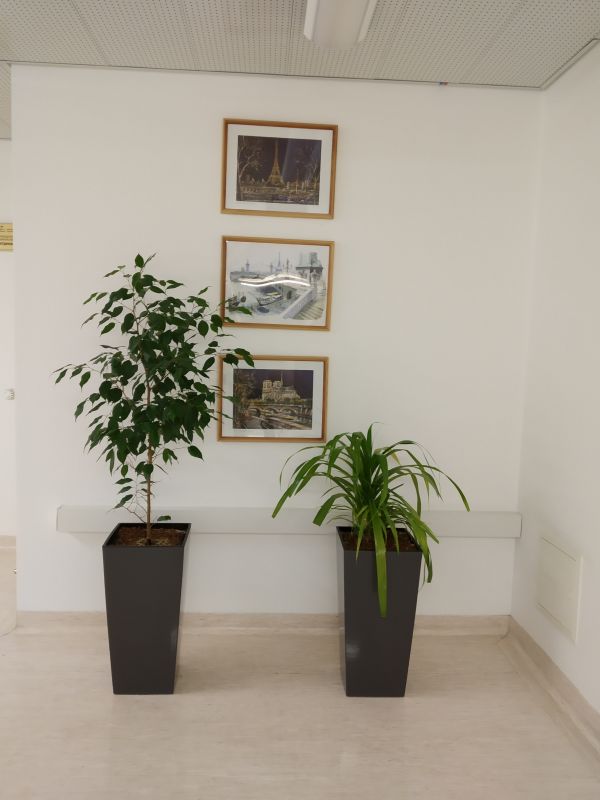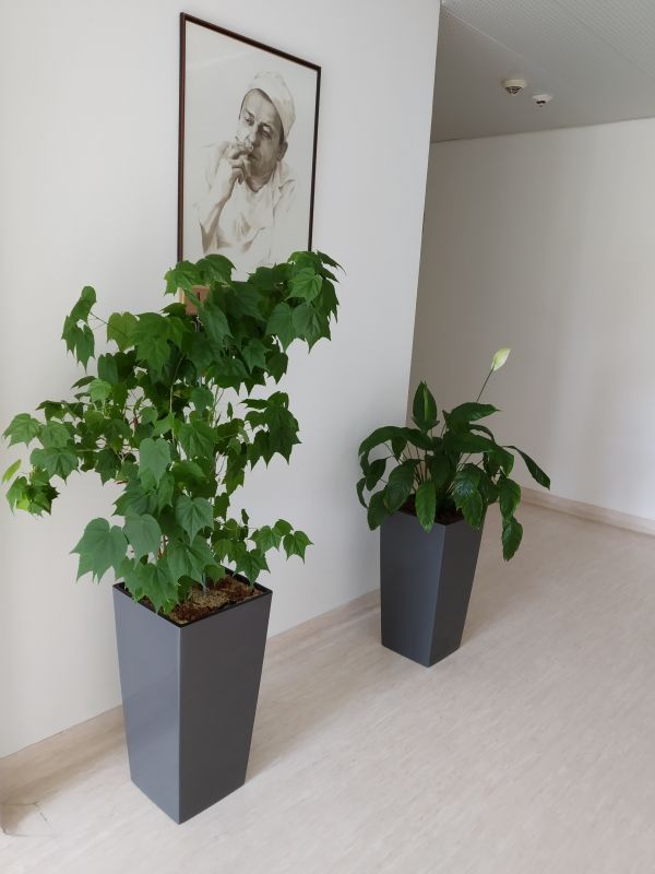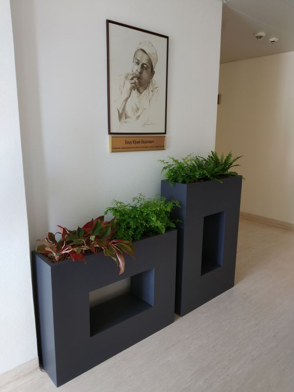 Геометрические линии в фитодизайне. Вы видите результат нашего кропотливого труда! Благодаря четким линиям интерьер приобрел завершенность.Зелёные растения изменили пространство, разбавили строгость. Входная группа стала ярче с этими цветочными акцентами. Кстати, кашпо дизайнерские, по нашим эскизам. Радует то, что наш труд приносит радость тем, кто спасает жизни) #любимоедело #студияирэнлакуста #занимаюсьтемчтолюблю #озеленение #фитодизайн #умеемзнаемпрактикуем #IrenLacustaпроекты