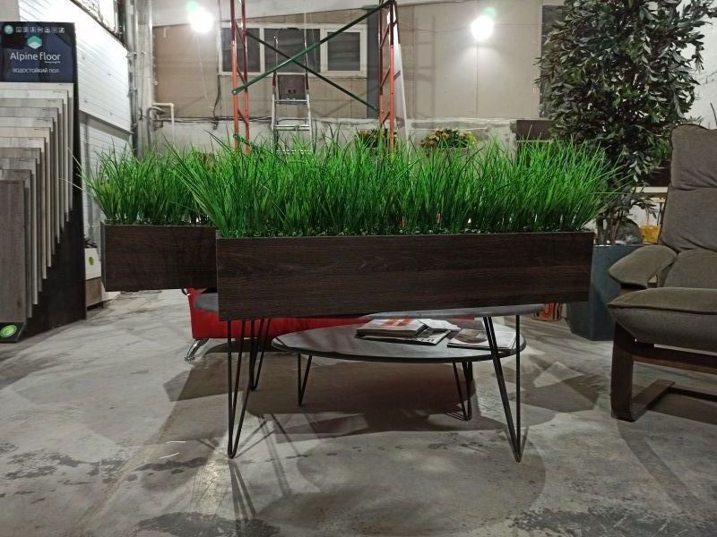 Короба с искусственной травой (осокой) были изготовлены для конференц-зала. Заказчик - Центр профессиональной переподготовки и занятости населения Красноярского края.