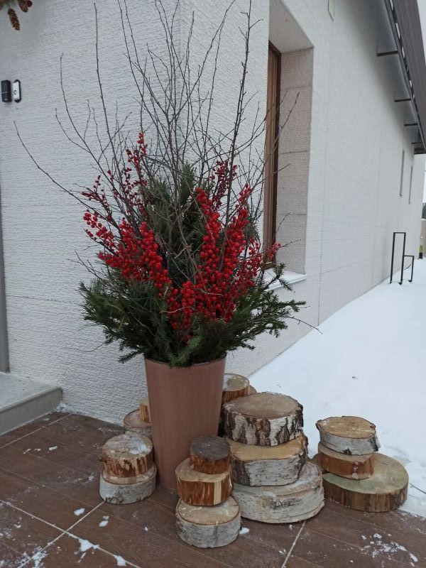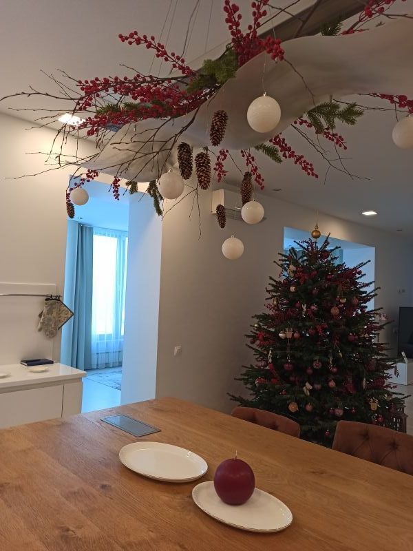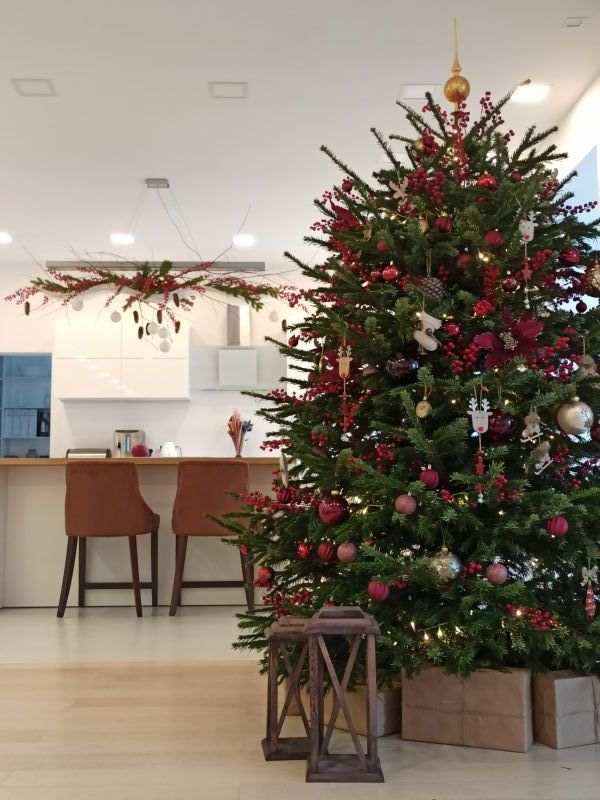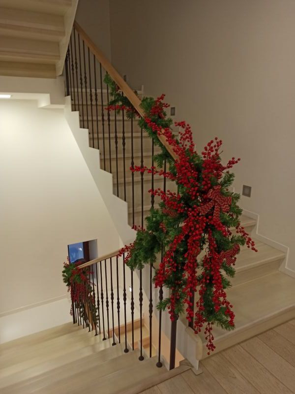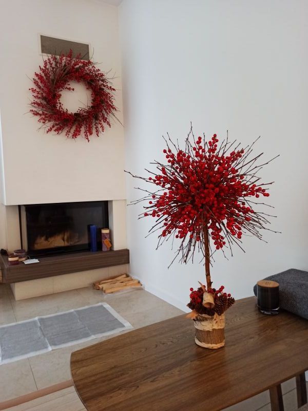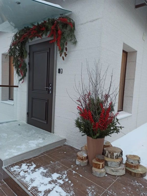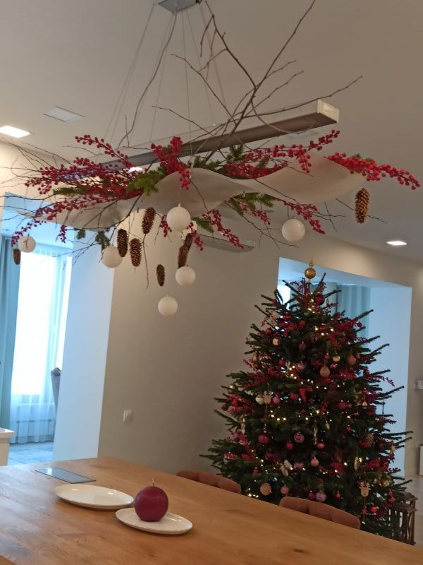 Заметили, что все детали в нашем декоре всегда сочетаются между собой? Именно так выстраивается единая концепция, где каждая деталь взаимосвязана и не выбивается из общей картины. В дизайне ёлки и настольных композиций для новогоднего стола нами были использованы ягоды, соответственно, мы их использовали и в других композициях грамотно расположенных по периметру гостиной, чтобы все дополняло и «отражало» друг друга. Также, ягоды мы использовали и для декора входной группы - так праздник встречает прямо с порога каждого гостя и хозяев дома