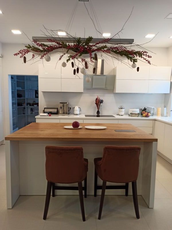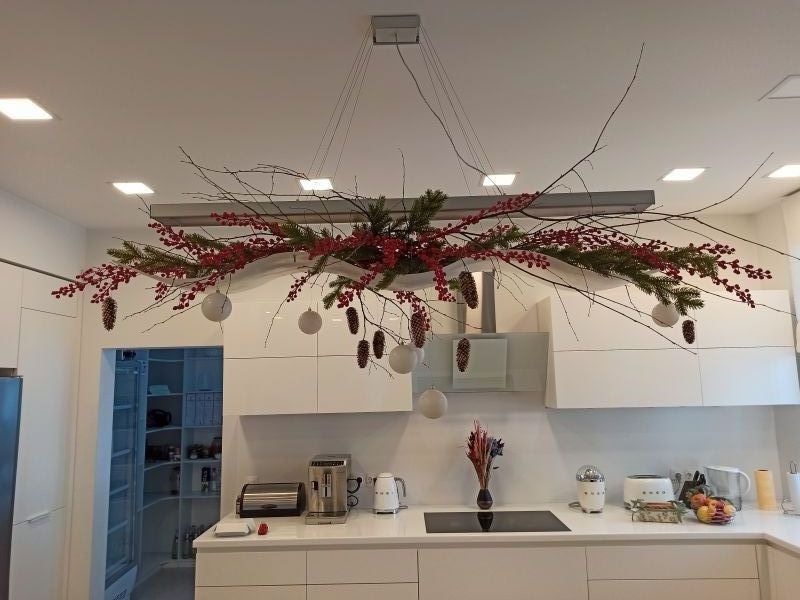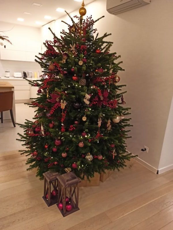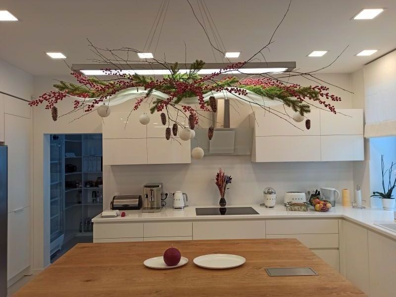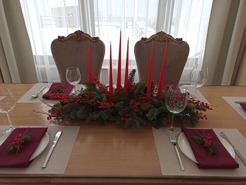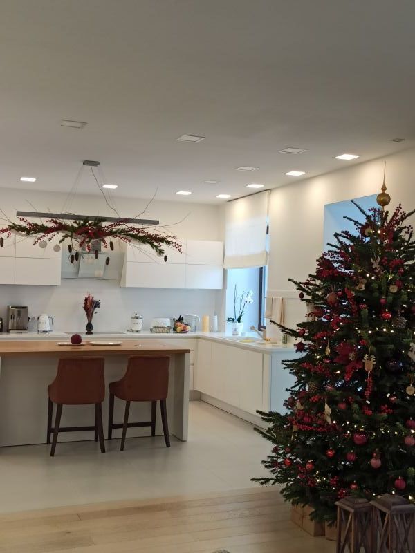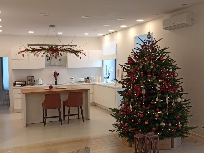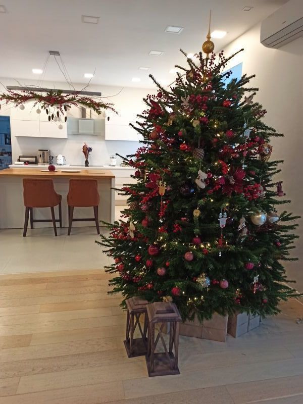 Заметили, что все детали в нашем декоре всегда сочетаются между собой? Именно так выстраивается единая концепция, где каждая деталь взаимосвязана и не выбивается из общей картины. В дизайне ёлки и настольных композиций для новогоднего стола нами были использованы ягоды, соответственно, мы их использовали и в других композициях грамотно расположенных по периметру гостиной, чтобы все дополняло и «отражало» друг друга. Также, ягоды мы использовали и для декора входной группы - так праздник встречает прямо с порога каждого гостя и хозяев дома
