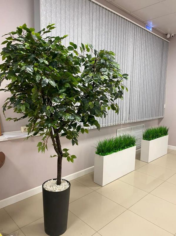 Освежить офисный интерьер с помощью растений это самое верное решение! Наши постоянные клиенты из Якутии обратились с запросом облагородить зону ожидания перед кабинетом руководителя. Так появилось дерево (высота 2,2м) и короба с травой. В ближайшее время стены украсят панели из мха, которые вдохнут добавят акцента и вдохнут новую жизнь локаничному офисному пространству.
