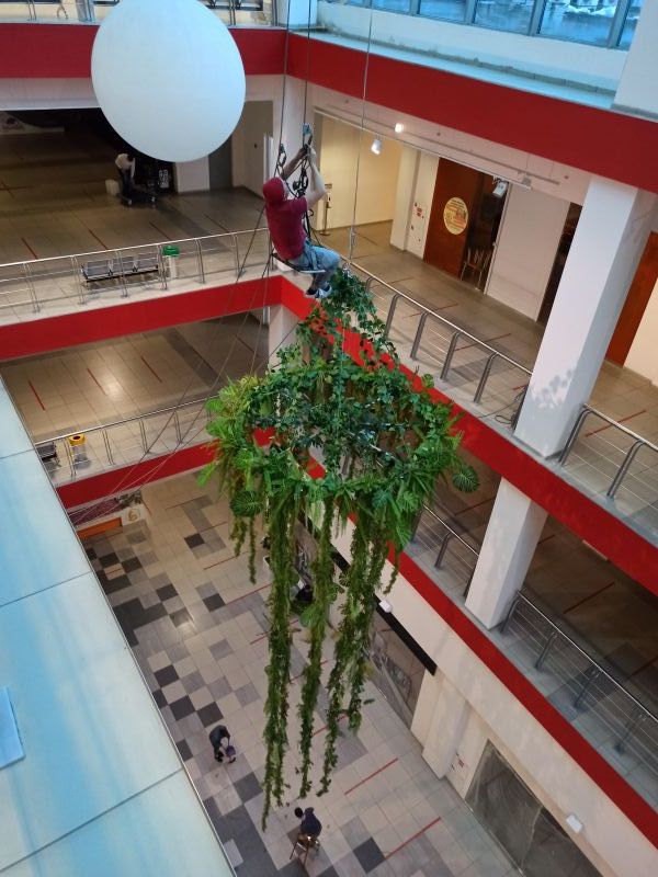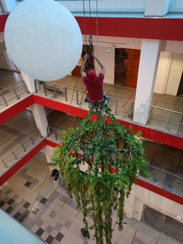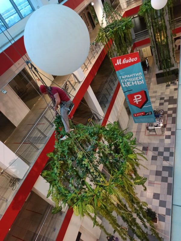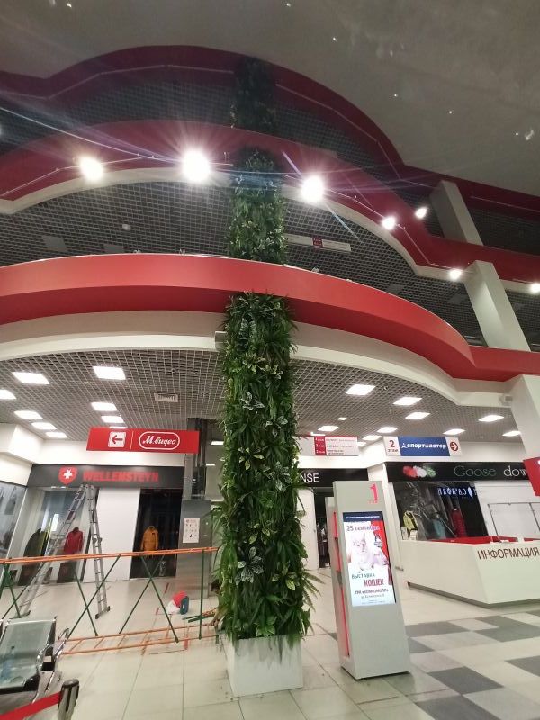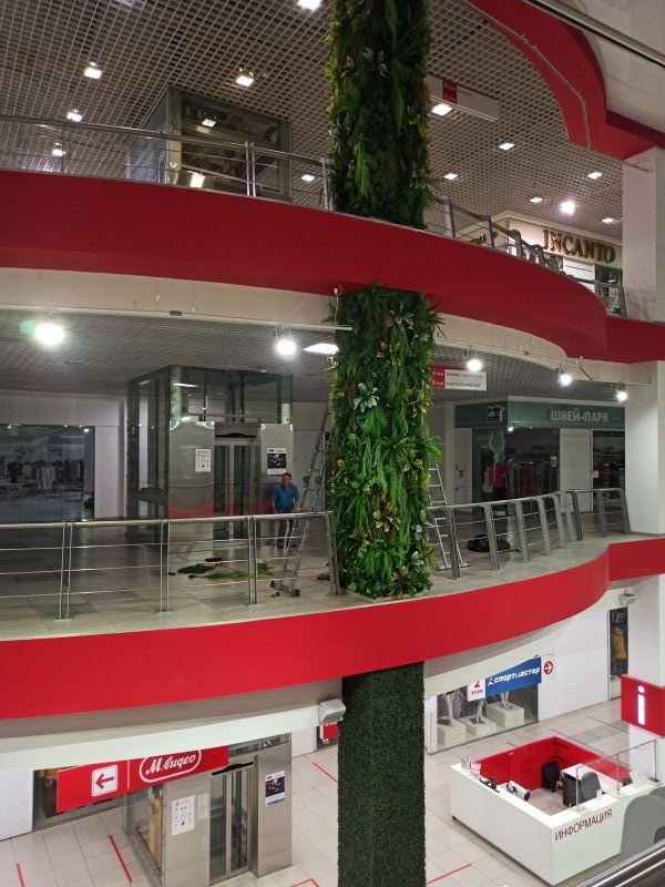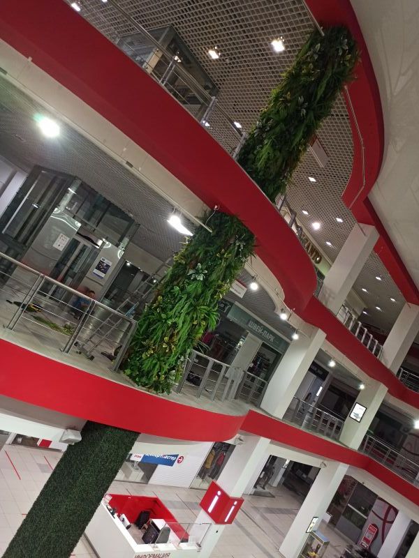 Рады возможности наконец-то поделиться с вами результатами нашей кропотливой работы над проектом для ТК КомосМОЛЛ! Мы очень старались, приближали этот момент как могли, и вот он настал! Представляем вашему вниманию зелёные фитостены, фотолокацию и подвесные "висячие" сады, которые украсили атриумные зоны торгового центра.