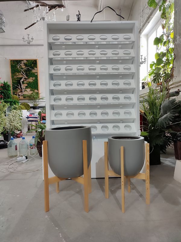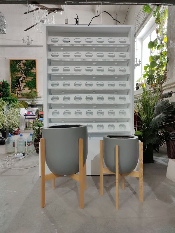 Мы сотрудничаем с двумя крупными российскими производителями кашпо. Это стильные горшки из стеклопластика, композита и облегченного бетона. Срок производства от 10 дней. Покраска по RAL. Вышлем прайс по запросу, пишите office@lakusta.ru