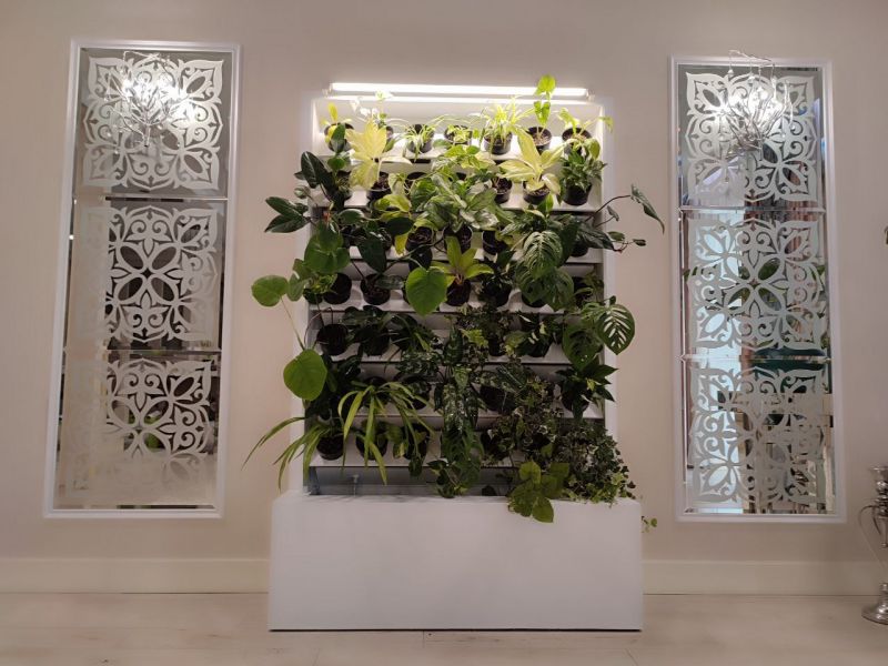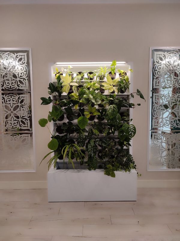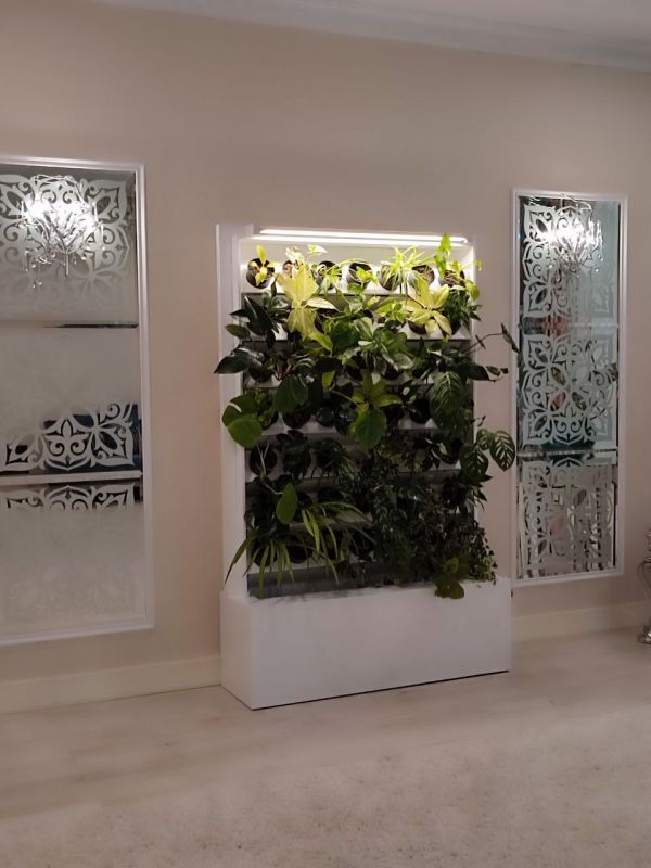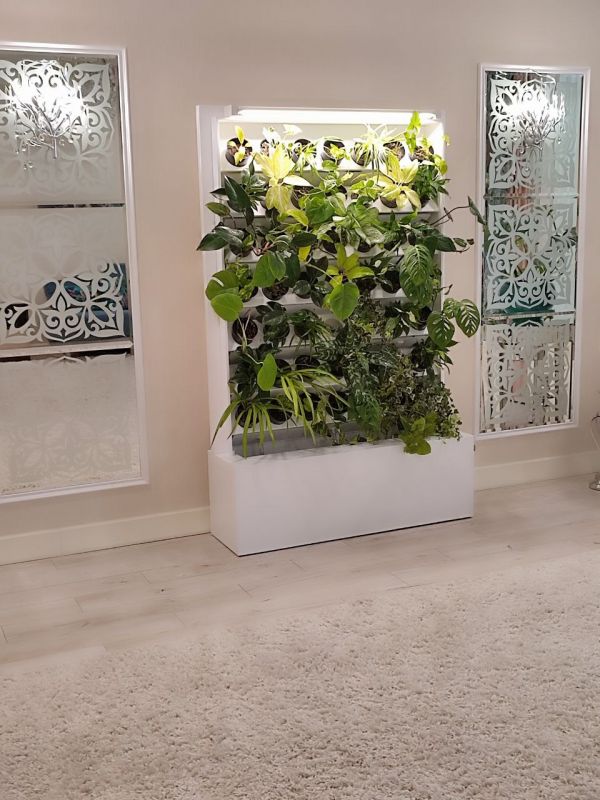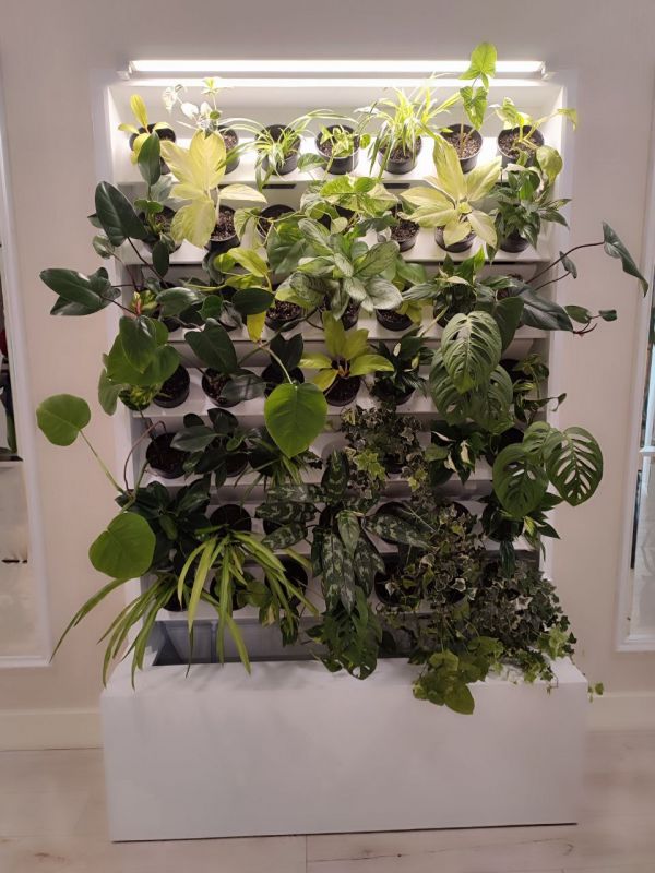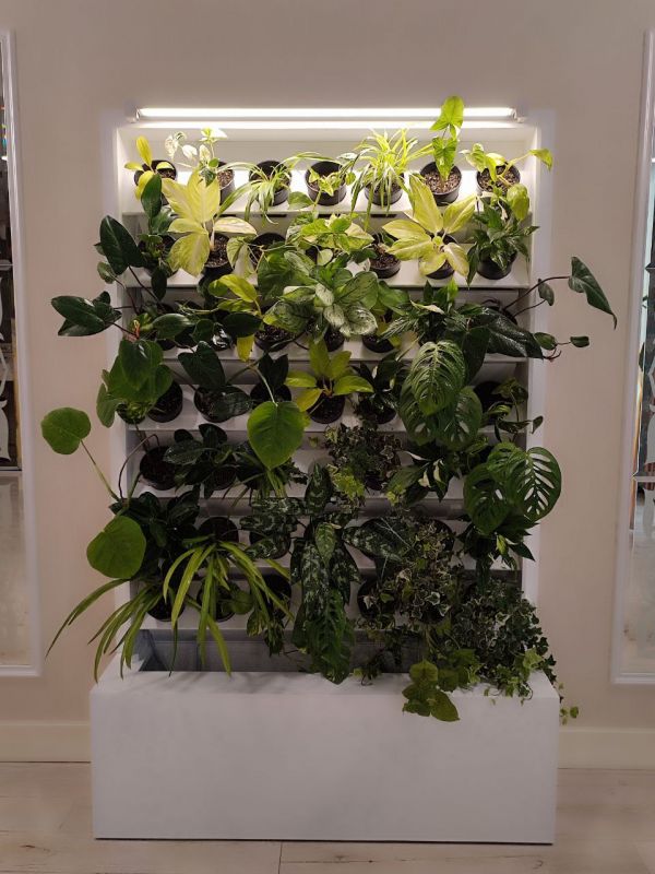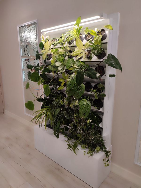 Симбиоз эстетического наслаждения и пользы для здоровья!!! Представляем вашему вниманию фитомодуль с живыми горшечными растениями от Студия фитодизайна Iren Lacusta . Такие мобильные фитостены подходят для дома или офисного пространства. Конструкция модуля может быть приставной и двусторонней. Главное требование - подключение к сети электричества, т.к. полив осуществляется за счёт подачи воды насосом, который находится внутри бака. Размеры модуля индивидуальны. В данном случае - 120*190 см с композицией из 49 горшечных растений.