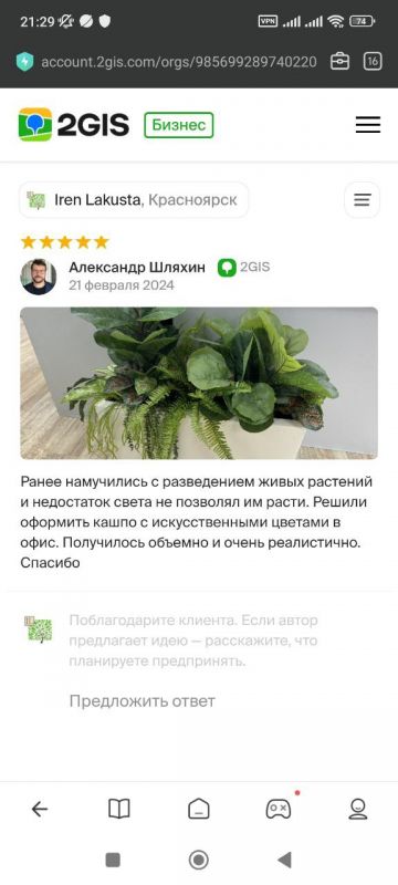 Наши заказчики просили облагодродить кашпо Лечуза, который уже несколько месяцев пустовал. Раньше в нем были горшечные растения, но они не прижились. Потому было принято решение о замене на искусственное озеленение. Результат заказчиков порадовал, а мы в свою очередь хотим донести до наших потенциальных заказчиков - мы всегда готовы найти оптимальный вариант для озеленения вашего пространства! Звоните +7913 532 79 75