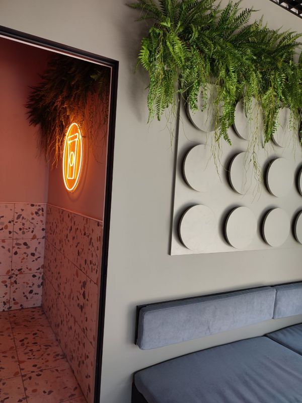 Озеленение для кофейни получилось воздушным, стильным, невесомым и насыщенным, как вкус кофе! Ждем ваших сочных фото с отметкой нашей студии Iren Lakusta. Приятного дня! Проект - Кофейня ГринХауз на ул.Киренского,д.55
